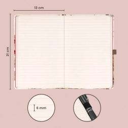Nedfæld idéer, mål og hverdagstanker i den stilfulde NOTIQUE-notesbog med et fint blomstret design. Det prikkede papir giver frihed til skrift, skitser og bullet journaling, mens det praktiske format 13 × 21 cm passer i både taske og rygsæk.
