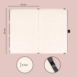 Takket være penneholderen har du altid skrivegrej ved hånden, og den indvendige lomme rummer småting, visitkort eller klistermærker. 172 sider på gult papir giver rigelig plads til idéer, dagbogsnotater og arbejdsnoter.