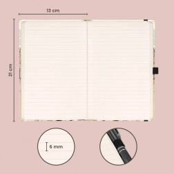 Indeni finder du 172 prikkede sider af gult papir, som er behageligt for øjnene og egner sig til både skrivning og lette skitser. Det linjerede layout hjælper dig med at holde teksten overskuelig og ordnet.