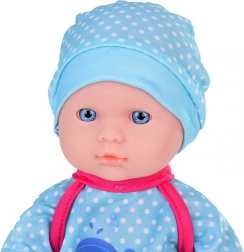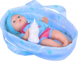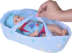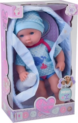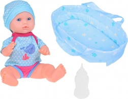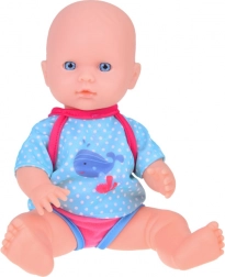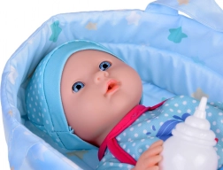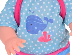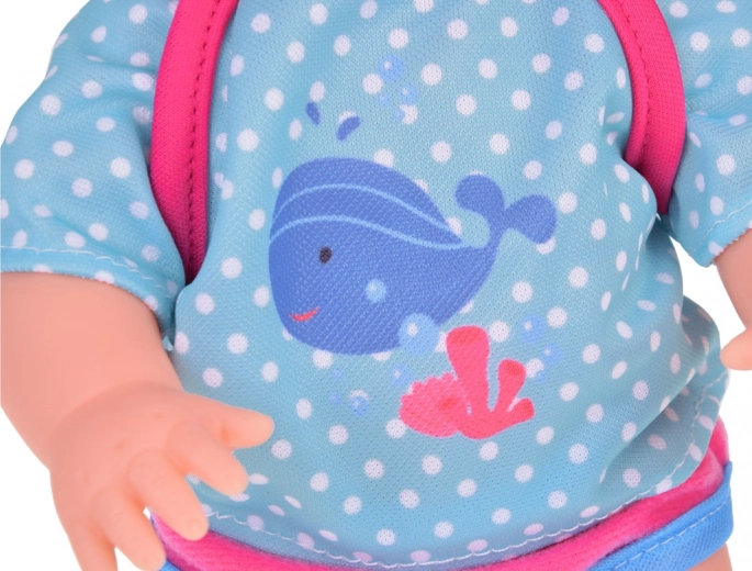 Dette sæt indeholder alt, hvad små forældre behøver til at passe deres dukker – dukke med realistiske træk, bæresele til nem transport og suteflaske. Dukken har blå øjne og er klædt i et blåt outfit med hvalmotiv, som giver rollelegen ekstra autenticitet. Efter at have drukket fra flasken kan dukken “tisse”, hvilket gør den ikke kun til legetøj, men også til et sjovt redskab til at lære små børn.
