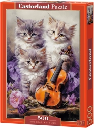 Oplev glæden ved at lægge et puslespil med 500 brikker med et motiv af nuttede killinger og violiner. Sættet byder på kreativ underholdning for både børn og voksne og udvikler opmærksomhed, tålmodighed og koncentration. Den høje kvalitet fra Castorland sikrer en fremragende æstetisk oplevelse og sikker brug.