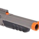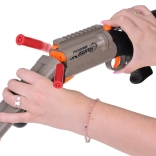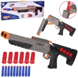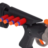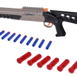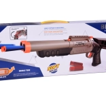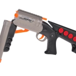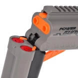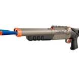 Pakken indeholder 6 patroner og 10 skumpile med sugekop, som nemt skubbes i patronerne for hurtig “ammunitions”forberedelse. Våbnet knækkes på midten for bekvem ladning, pumpemekanikken sikrer jævn funktion, og den stabile kolbe hjælper med præcis sigtning.