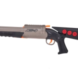 Denne solide børnedobbeltriffel er ideel til actionlege inde og ude. Den udmærker sig ved kvalitetsplast, orange sikkerhedsdetaljer og realistiske features, inklusive udkast af tomme patroner ved genladning. Takket være det dobbeltløbede design kan du affyre én pil med let tryk på aftrækkeren eller begge på én gang med et hårdere tryk.