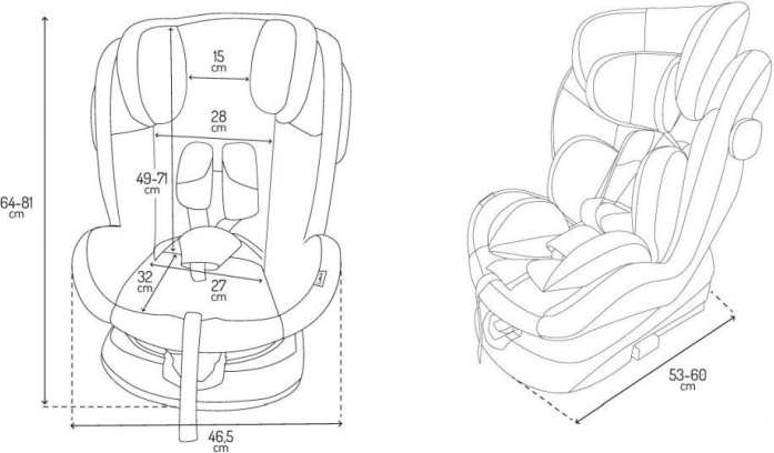 Sideforstærkninger og ergonomisk design giver maksimal beskyttelse og komfort til barnet. Sædet vokser med barnet takket være de justerbare positioner for hovedstøtte og ryglæn.
