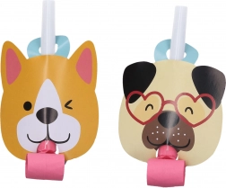 Gør enhver fest sjovere med de søde partyfløjter med hundemotiv. Pakken indeholder 6 stk. – perfekt til børnefødselsdage og temafester for hurtig og nem underholdning.