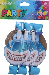 Let at bruge og med et effektfuldt design er disse truthorn et populært partytilbehør. Kombinér dem med andre dekorationer i blå nuancer og med hajmotiv for et ensartet festudtryk.
