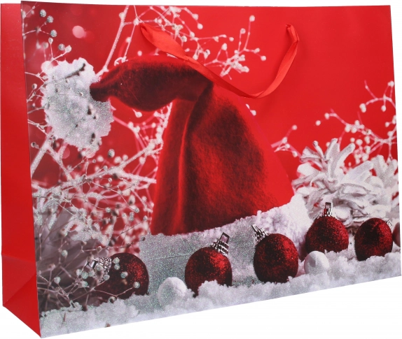 Denne rummelige julegavepose af kraftigt papir er et fremragende valg til elegant indpakning af gaver. Takket være den udvidede bund og sidefolder rummer den nemt større eller mere voluminøse genstande, mens de solide hanke sikrer komfortabel og sikker transport.