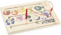 Denne kvalitets magnetiske trælabyrint er et fremragende pædagogisk legetøj til at udvikle børns fingerfærdighed. Med en magnetpen flytter børn de farvede kugler langs markerede stier, sorterer dem efter farve og matcher dem med billeder af frugt eller tal. Legen støtter logisk tænkning, koncentration og hånd-øje-koordination.