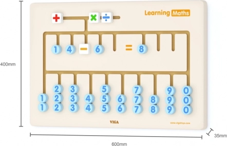 VIGA’s træbaserede regnetavle giver børn en sjov og visuelt overskuelig introduktion til tal og simple regnestykker. Den interaktive idé med at flytte tal og symboler styrker koncentration, øje–hånd-koordination og den naturlige nysgerrighed for at udforske matematik.