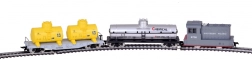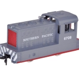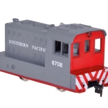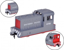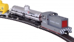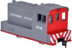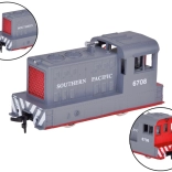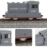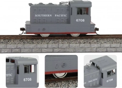 Denne elektriske model af et godstog efterligner trofast et rigtigt lokomotiv, inklusive SOUTHERN PACIFIC-tryk og detaljerede elementer. Lokomotivet er ekstra vægtet for bedre greb og stabilitet i kurver, vognene har dreiende aksler for smidig gennemkørsel af sving, og sammensætning er let takket være kroge/forbindere.