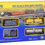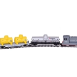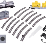 - Komplet indhold: SOUTHERN PACIFIC-lokomotiv, platformvogn med to gule tanke, sølvfarvet kemisk tank, 30° kurver (11 stk), forsynet kurveskinne, strømforsyning og forbindelseskabel.