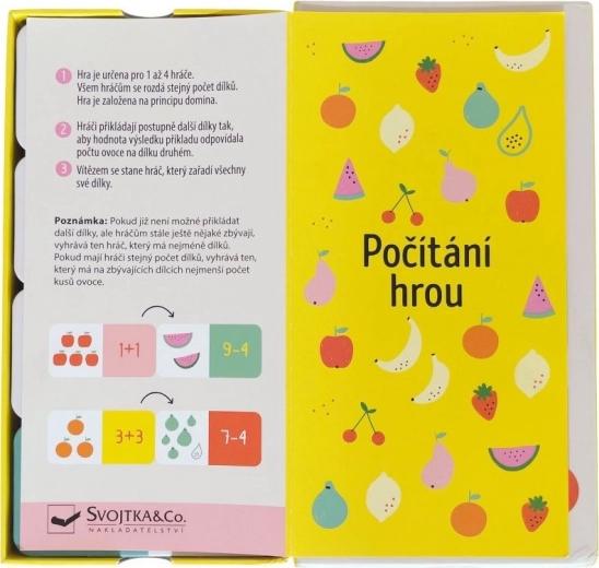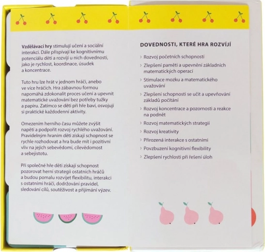 Dette smarte og underholdende spil fra Svojtka & Co. udvikler børns nøglekompetencer: fra grundlæggende aritmetik til logik og strategisk tænkning. Domino-princippet motiverer børn til at finde de rigtige par – de forbinder regnestykke med den tilsvarende mængde frugt.