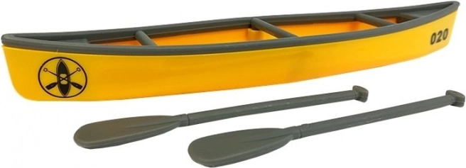 Sættet indeholder en gul-grå kajak og to pagajer. Den kan nemt fastgøres på bilens tag, så I kan tage på vandmissioner i børnenes fantasi.