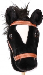 Hobbyhesten på stang Baron er det ideelle legetøj til små hesteelskere. Den har et sort plysset hoved med realistiske detaljer som brun grime og et hvidt mærke, der tilføjer til autenticiteten. Dets design og behagelige materiale støtter børns fantasi og kreativitet.