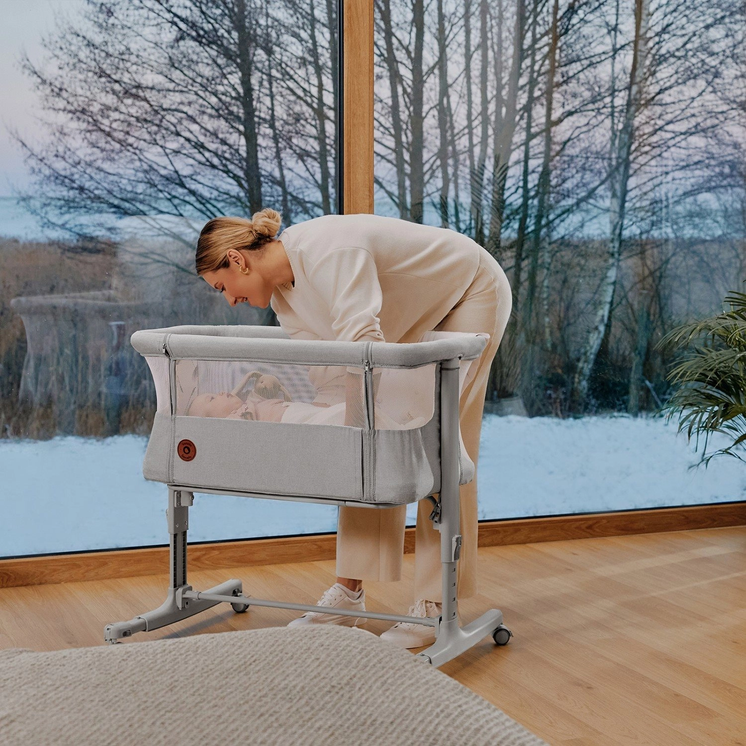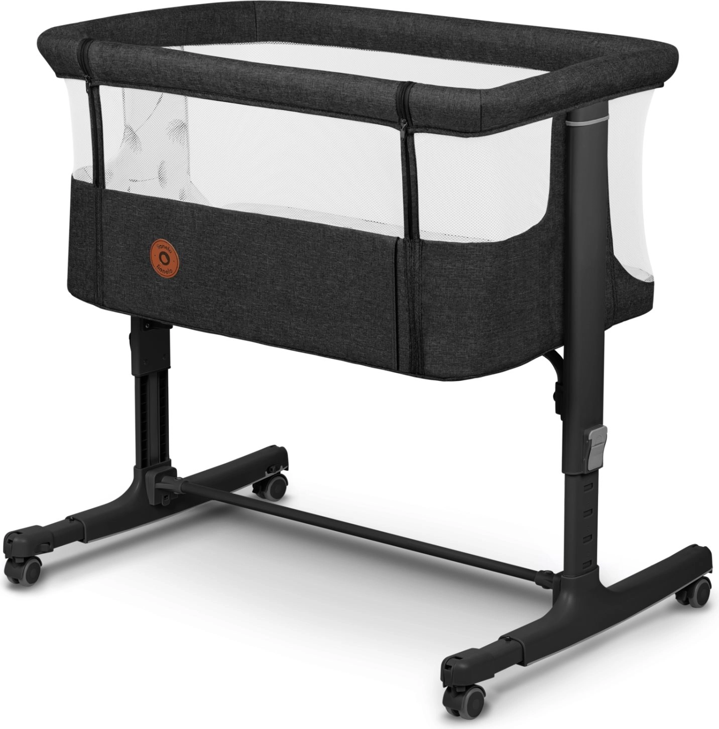 Sengen er desuden udstyret med en åbningsbar side, som gør adgangen til dit barn lettere, samt fire hjul med lås, der sikrer nem flytning rundt i hjemmet.