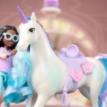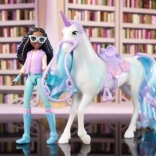 Dukken Layla har 7 bøjemuligheder for alsidige poseringer, og enhjørningen Glacier har en smuk børstelig manke.