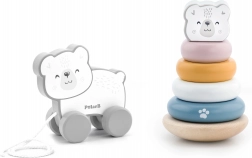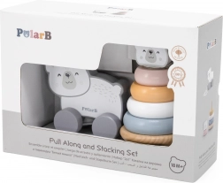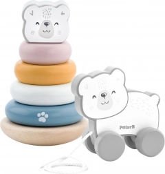 Oplev et perfekt sammensat sæt trælegetøj Viga PolarB: en stabil stabelpyramide med isbjørn til sortering og stabling af ringe samt en træk-bamse, der motiverer børn til bevægelse og de første skridt. De blide pastelfarver og det søde design glæder både børn og forældre.