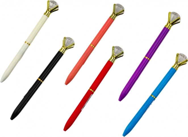 Stilfuld kuglepen med en stor “diamant” øverst, som kombinerer elegance og funktionalitet. Skriver med blåt blæk i stregtykkelsen 0,7 mm for en glat og jævn skriveoplevelse. Perfekt som gave, til kontoret og skolen, fås i et mix af farver.
