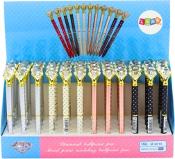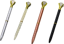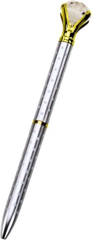 Elegant kuglepen med en stor funklende “diamant” på toppen giver din skrift stil og flair. Den bløde blå blæk og en 0,7 mm spids sikrer glat og jævn skrivning. Fås i mix af farver – hvid, sort, sølv og pudderrosa.