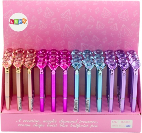 Elegant kuglepen med en stor, glitrende “diamant” i enden giver din skrift stil og finesse. Blå blæk og en spids på 0,7 mm sikrer glat og behagelig skrivning til både hverdag og særlige lejligheder.