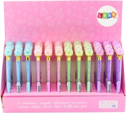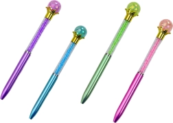 En unik pen, der kombinerer elegance og moderne design. Den gennemsigtige krop med små sten skaber flotte reflekser, og afslutningen formet som en “diamant” giver skrivningen ekstra stil. Takket være den blå refill og en spidstykkelse på 0,7 mm giver den et jævnt og læseligt skriveflow, velegnet til skole, kontor og personlige noter.