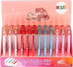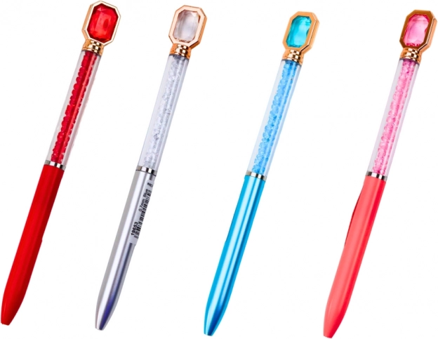 Elegant kuglepen med gennemsigtigt skaft fyldt med funklende sten og en fin krystal i enden. Blå blæk sikrer glat og flydende skrift, ideel til hverdagsbrug og som gave. Fås i mix af skaftfarver (lyserød, blå, rød, sølvfarvet).