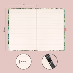 Få styr på tankerne med den elegante NOTIQUE-notesbog med lilje. Det kompakte mål 13 × 21 cm passer i både håndtaske og rygsæk, de hårde omslag holder alting sikkert, og elastikken forhindrer, at den åbner sig af sig selv.
