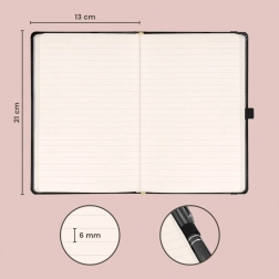 Organisér dine tanker med stil. NOTIQUE-notesbogen har robuste hårde omslag, en elastik mod uønsket åbning og en praktisk indre lomme til småting. Penneløkken sikrer, at du altid har skriveredskabet ved hånden.