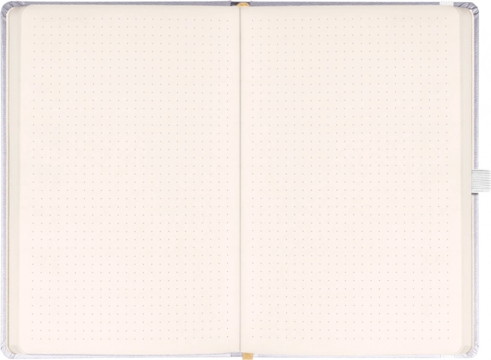 Elegant prikket notesbog Notique Balacron i sølvudførelse tilbyder en robust overflade, behageligt design og formatet 15 × 21 cm, ideelt til daglige noter, planlægning og skitsering.