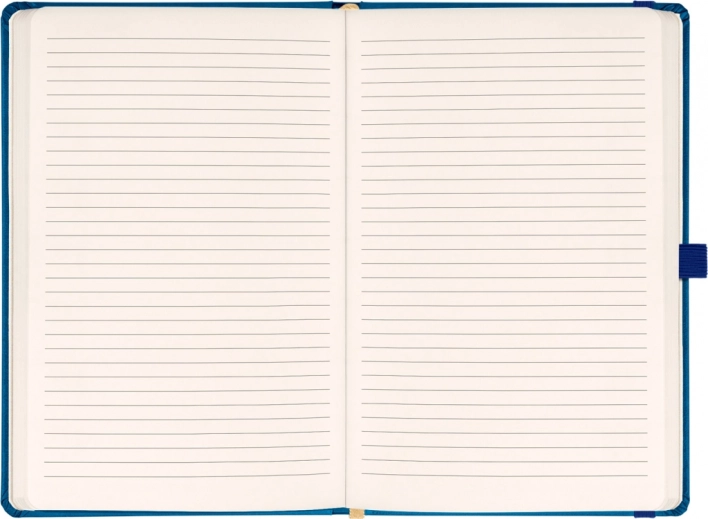 Elegant linjebog Notique Aprint i blå farve i det universelle format 15 × 21 cm. Tilbyder klassisk og tidløst design, fin overfladestruktur og mulighed for nem prægning af firmalogo – ideel til kontor, skole og repræsentative gaver.