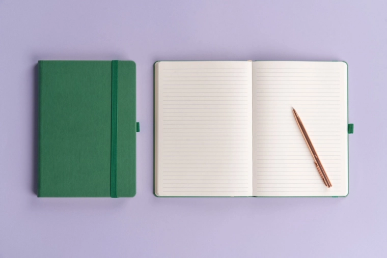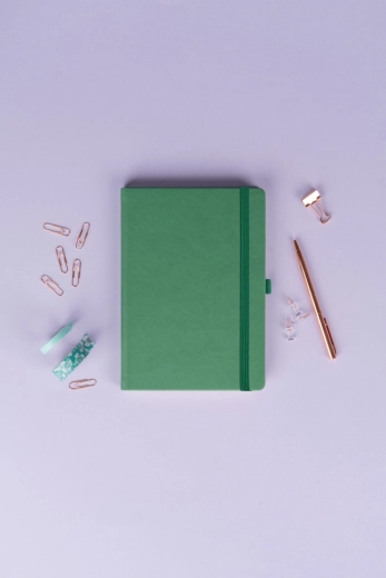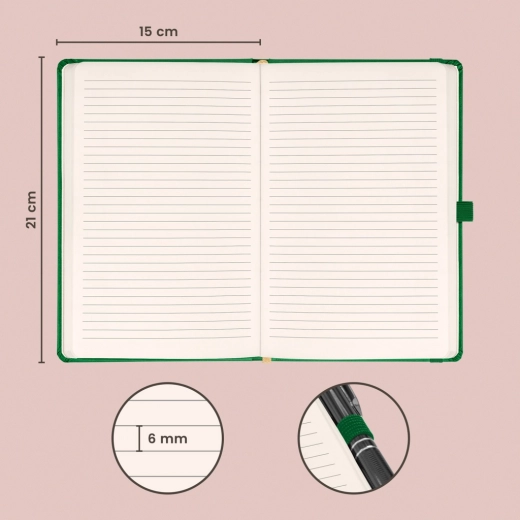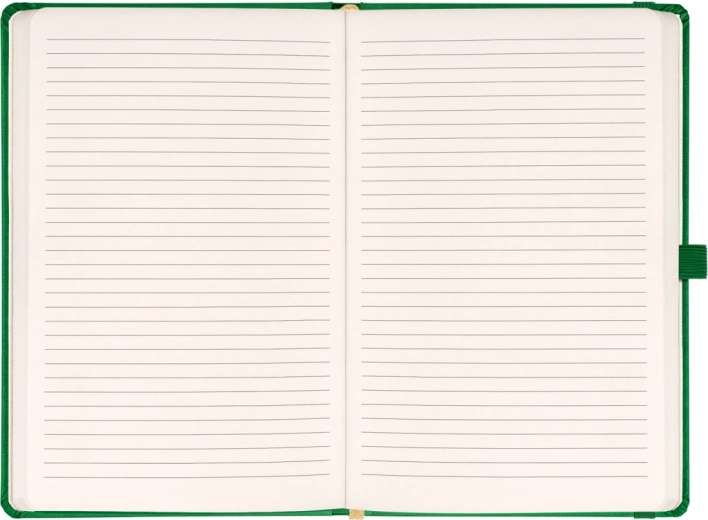 Elegant linjeret notesbog Aprint i grøn udgave tilbyder klassisk design, praktisk til daglig skrivning og overflade med fin struktur, som nemt kan præges med firmalogo.