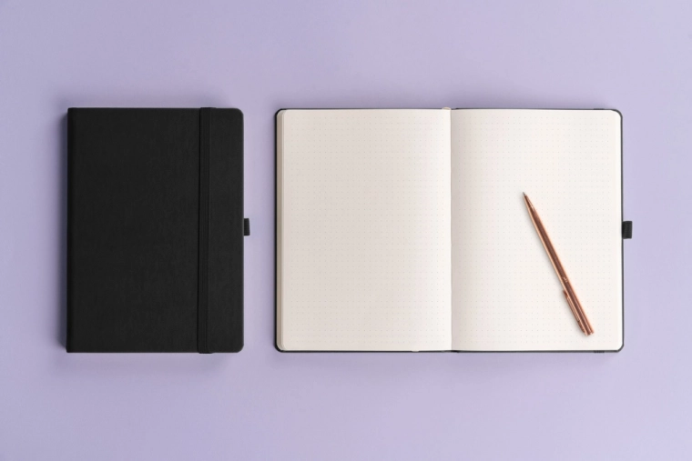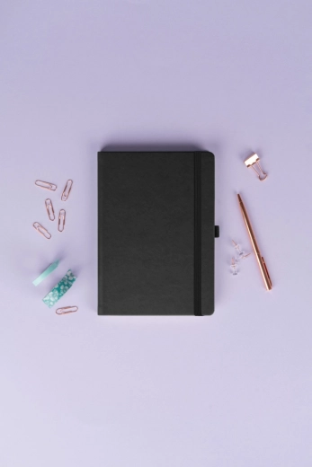 Den elegante NOTIQUE Aprint-notesbog er et fremragende valg til daglige noter, planlægning og kreative idéer. Det sorte design og den diskrete struktur på omslaget giver et professionelt udtryk, som passer både på kontoret og til møder.