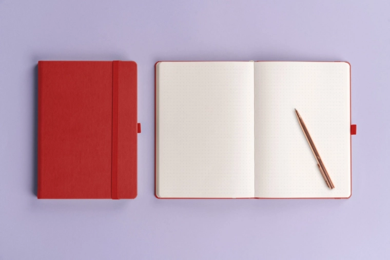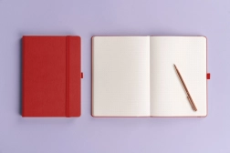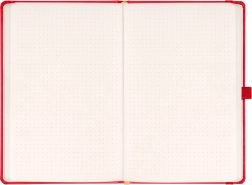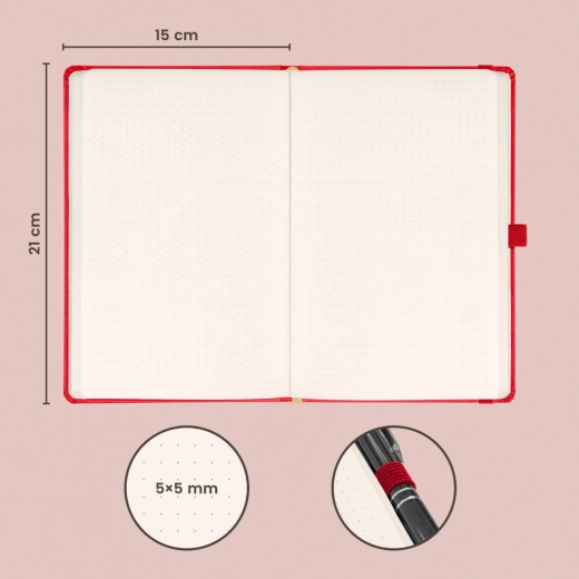 Prikkede sider giver fleksibilitet til skrivning, tegning og bullet journal. Omslagets overflade er blandt de mest populære – den er holdbar og muliggør nem prægning af firmalogoer, så den også egner sig som en firmagave.