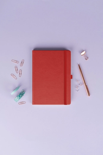 Stilfuld prikket notesbog NOTIQUE Aprint i rød er ideel til daglige noter, planlægning og skitser. Den tilbyder elegant udseende, fin overfladestruktur og nem tilpasning med firmalogo.