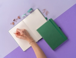 Opdag et praktisk og elegant tilbehør til både kontor og skole. Den prikkede notesbog NOTIQUE Aprint forener klassisk design og tidløs elegance i en populær grøn udgave. Den fine struktur på omslaget virker professionel og er ideel til branding via prægning af firmalogo.