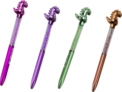 Gør dit penalhus lidt mere specielt med en pen, der fanger blikket med det samme. Den gennemsigtige krop fyldt med små “diamanter” glimter let og understreger penens eksklusive karakter. Den stilfulde dinosaur-figur i enden giver pennen et legende og trendy look.