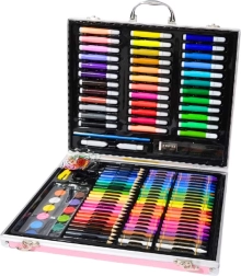 Dette alsidige kunstnersæt er et fremragende valg til små kunstnere, der vil afprøve forskellige teknikker. Den lyserøde kuffert med et magisk enhjørningemotiv fanger blikket med det samme og opbevarer sikkert alle redskaber på ét sted. Takket være det rige indhold kan børn tegne, male og skygge og skabe originale værker både hjemme og på farten.