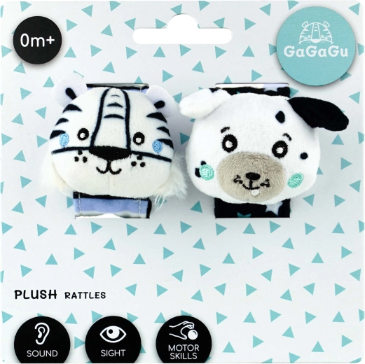 Rangle GaGaGu aktiverer barnets hf8relse med en blid og behagelig raslelyd. Legetf8jets kontrastfarver og mf8nstre er designet til at stimulere barnets syn, hvilket hje6lper med at udvikle deres sanser. De plyssede hoveder af dyrene, specifikt tiger og hund, opmuntrer bf8rn til leg og underst0f8tter finmotorikken, som finger- og h0e5ndbevægelser, samt tre6ning af motorisk koordination.6p>