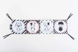 Bogen er let, uden plastdele, og takket være båndene kan den nemt fastgøres på en barnevogn eller tremmeseng.
