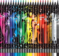 Nyd tegningen med dette fantastiske sæt på 24 MAPED Color'Peps farveblyanter med monster-tema, som imponerer med deres unikke sorte design. Trekantet krop sikrer et komfortabelt greb, hvilket hjælper ved længere tids tegning. De er ideelle til børn, der elsker legende og farverige designs.