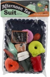 Sættet indeholder en dekorativ blå bakke, kaffekop, lille kande, flaske/krus, mælkebeholder, bestik og forskellige søde lækkerier. Sættet styrker sociale færdigheder, kommunikation og fantasi i legen med venner.