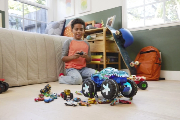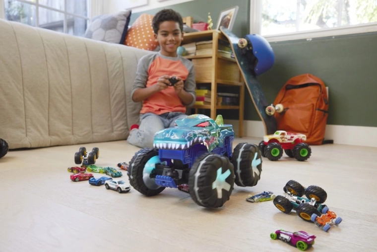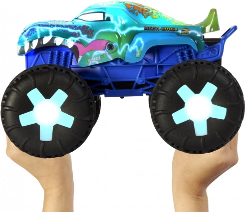 Den sjove, fjernstyrbare Monster Truck fra Hot Wheels, Mega-Wrex, byder på lys- og lydeffekter, som drager dine børn ind i en verden af eventyrlig leg.