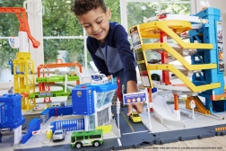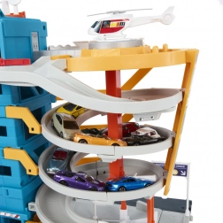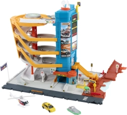 Den manuelle elevator lader dig transportere køretøjerne til de enkelte niveauer i parkeringsanlægget. Når helikopteren lander på heliporten, sættes køretøjerne i bevægelse! Forskellige dele af sættet, inklusive den roterende bro, giver en række interaktive elementer til sjov leg og udvikling af børns kreativitet.