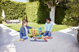 Heliporten giver et sjovt element, hvor køretøjerne ruller ned, hver gang helikopteren lander.