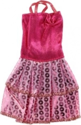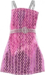 Lyserøde kjoler med glitrende sølvbælte og stropper giver dukken et strejf af luksus og stil.