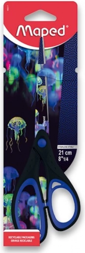 Maped saks Deepsea Paradise 21 cm med bløde håndtag og blade i rustfrit stål. Skarp, præcis og holdbar – ideel til skole og kontor.