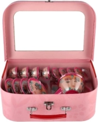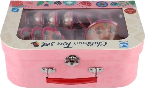 Tekandesættet er opbevaret i en solid kuffert med hank og metal-lukning. Børn kan tage det med overalt og nemt rydde op efter legen.