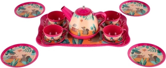 Sættet indeholder tekande, kopper og underkopper med legende dyre- og blomstermotiver. Børn kan invitere venner, dukker eller bamser og øve kommunikation, fantasi og finmotorik. Velegnet fra 3 år.