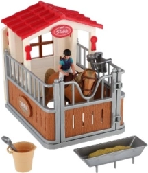 Børn kan deltage i plejen af hestene ved hjælp af tilbehøret, såsom en fodertrug og en spand.