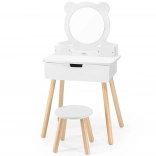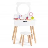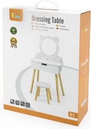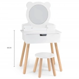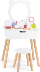 Kosmetikbordet fra mærket VIGA er udstyret med et bjørnespejl og har praktiske opbevaringsrum, der opmuntrer børn til kreativ leg. Bordet har træben og er i elegant hvid, som imponerer enhver lille dame.